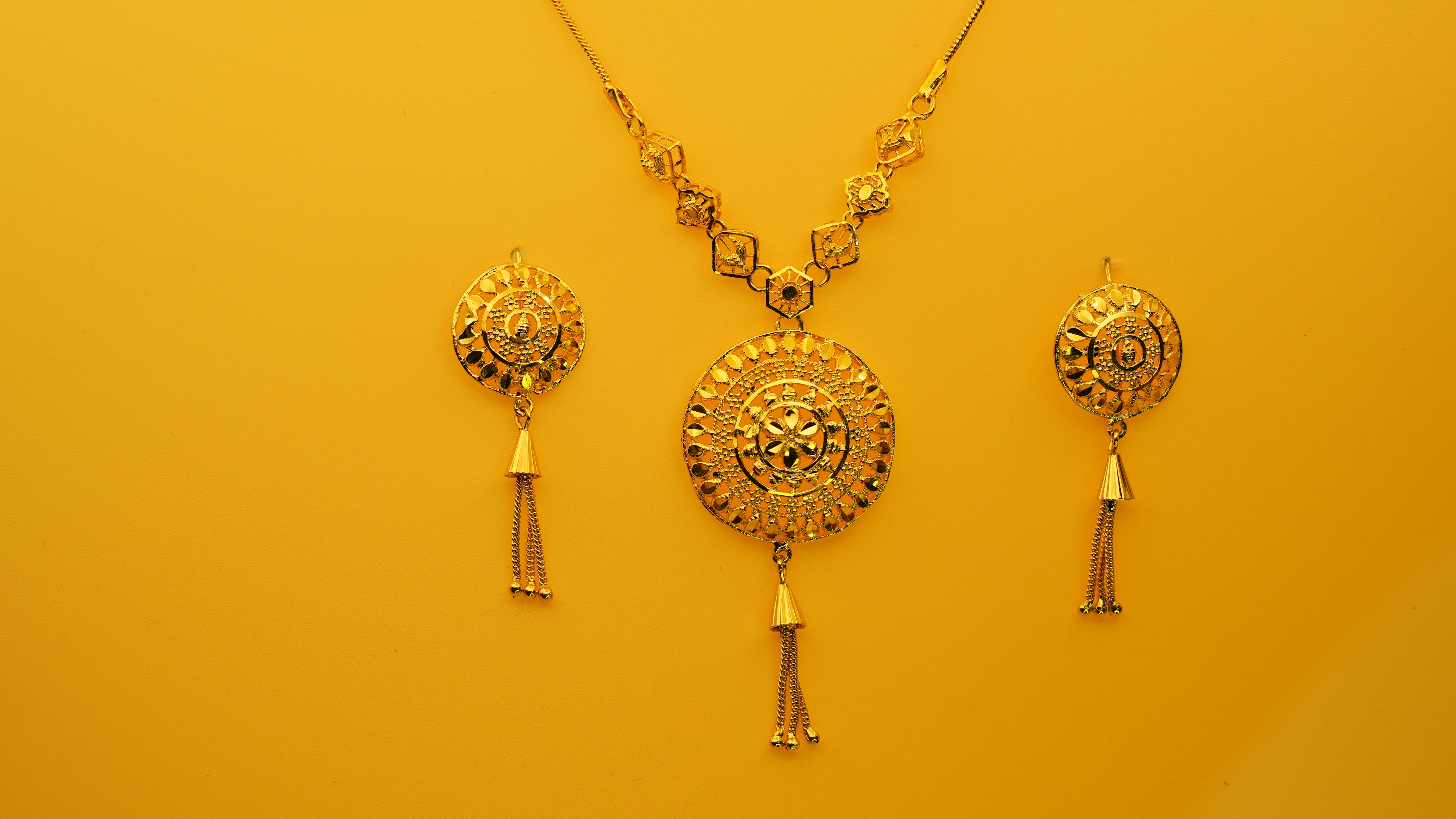 Crafted for unforgettable moments, the Eternal Glow Set features finely textured gold spheres and a double-layered chain that exudes luxury and elegance at every glance.