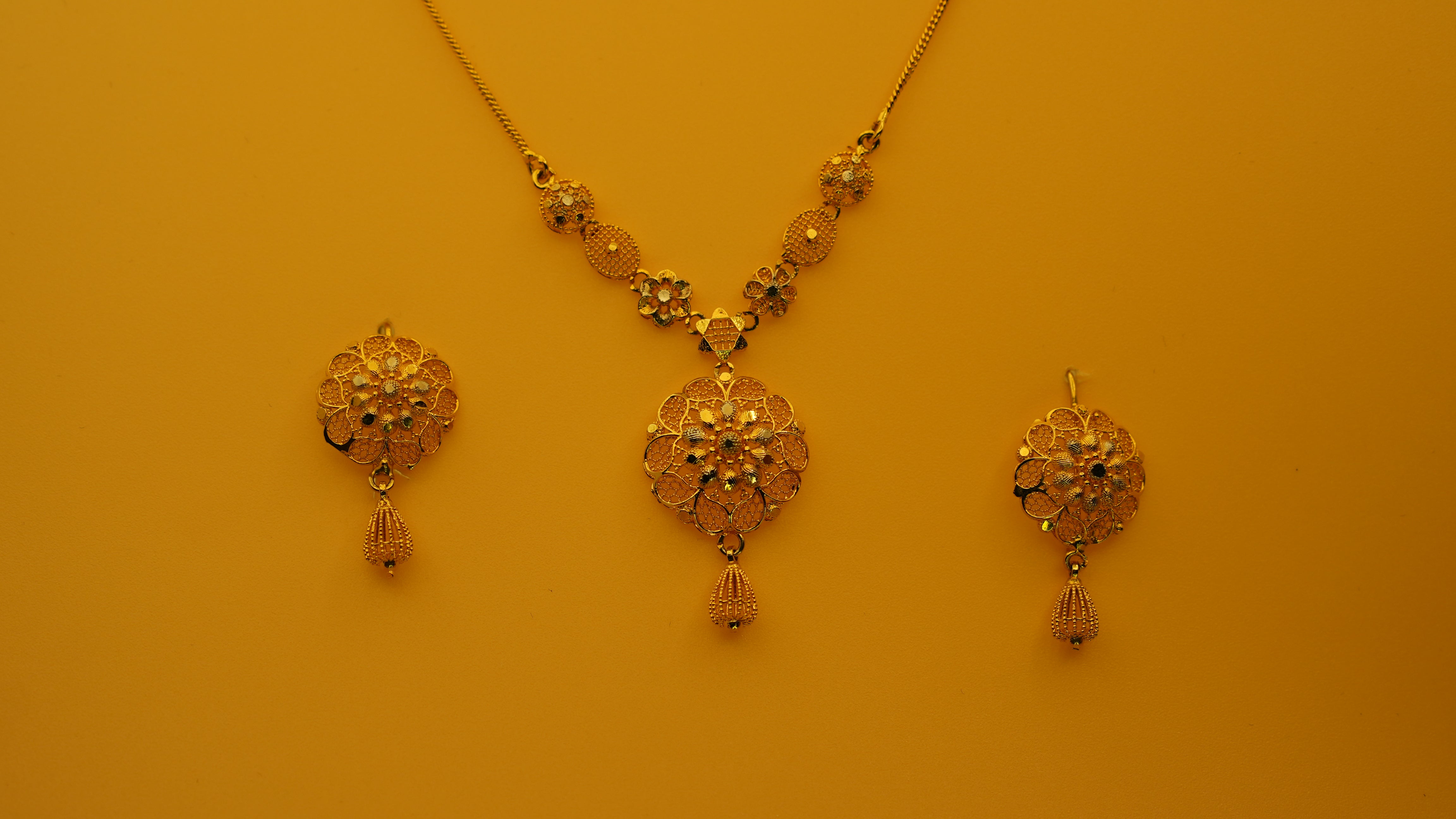 Handcrafted with precision, the Mehar Set blends modern refinement with traditional artistry. Its dual-layer chain and floral centerpiece create a graceful, balanced look.