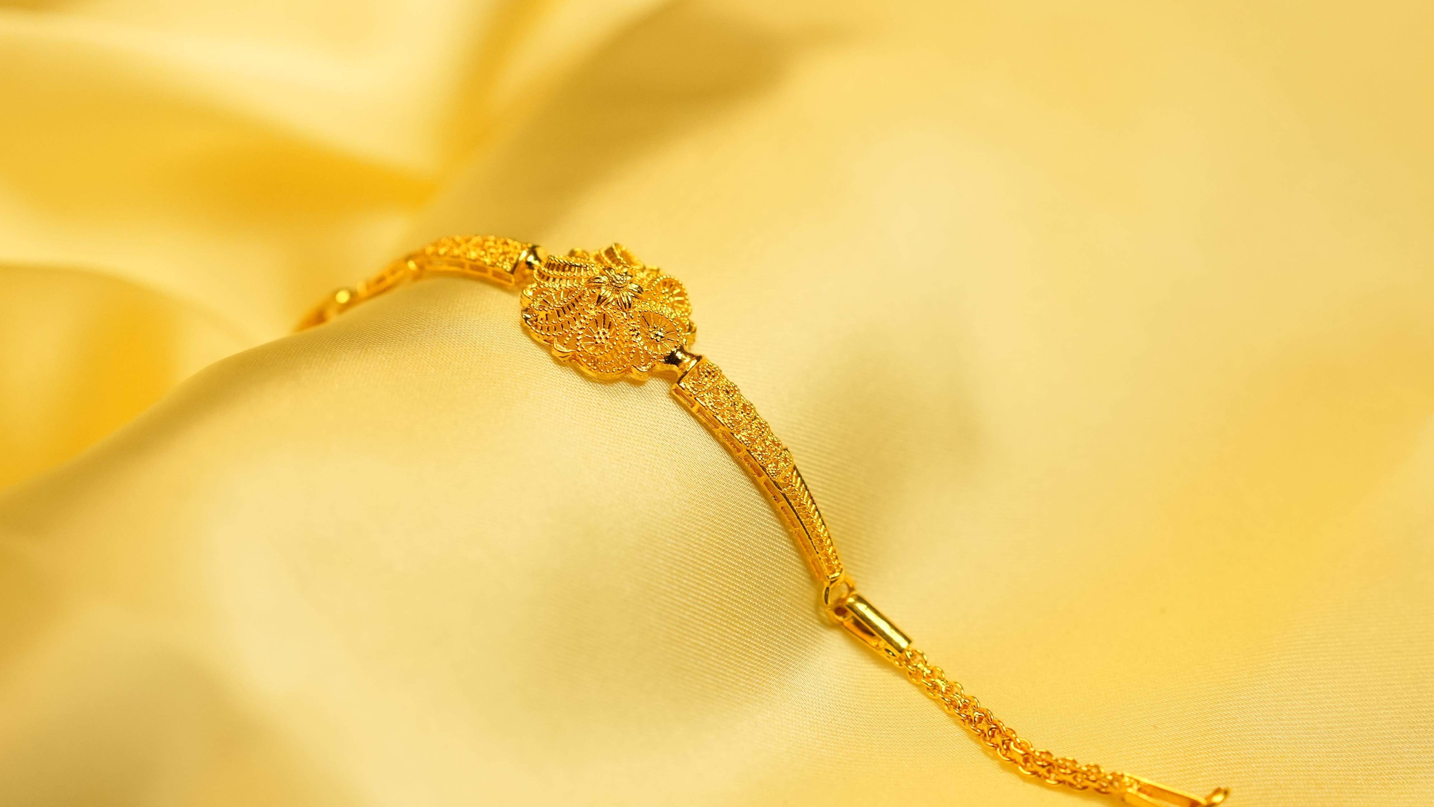 Embrace timeless sophistication with this Royal 22K Gold Filigree Bracelet. Expertly handcrafted with intricate floral detailing, this bracelet showcases the artistry of traditional goldsmith craftsmanship. Its radiant golden hue and refined texture make it a perfect statement piece for both festive occasions and everyday luxury. The secure clasp ensures a comfortable and elegant fit for all-day wear.