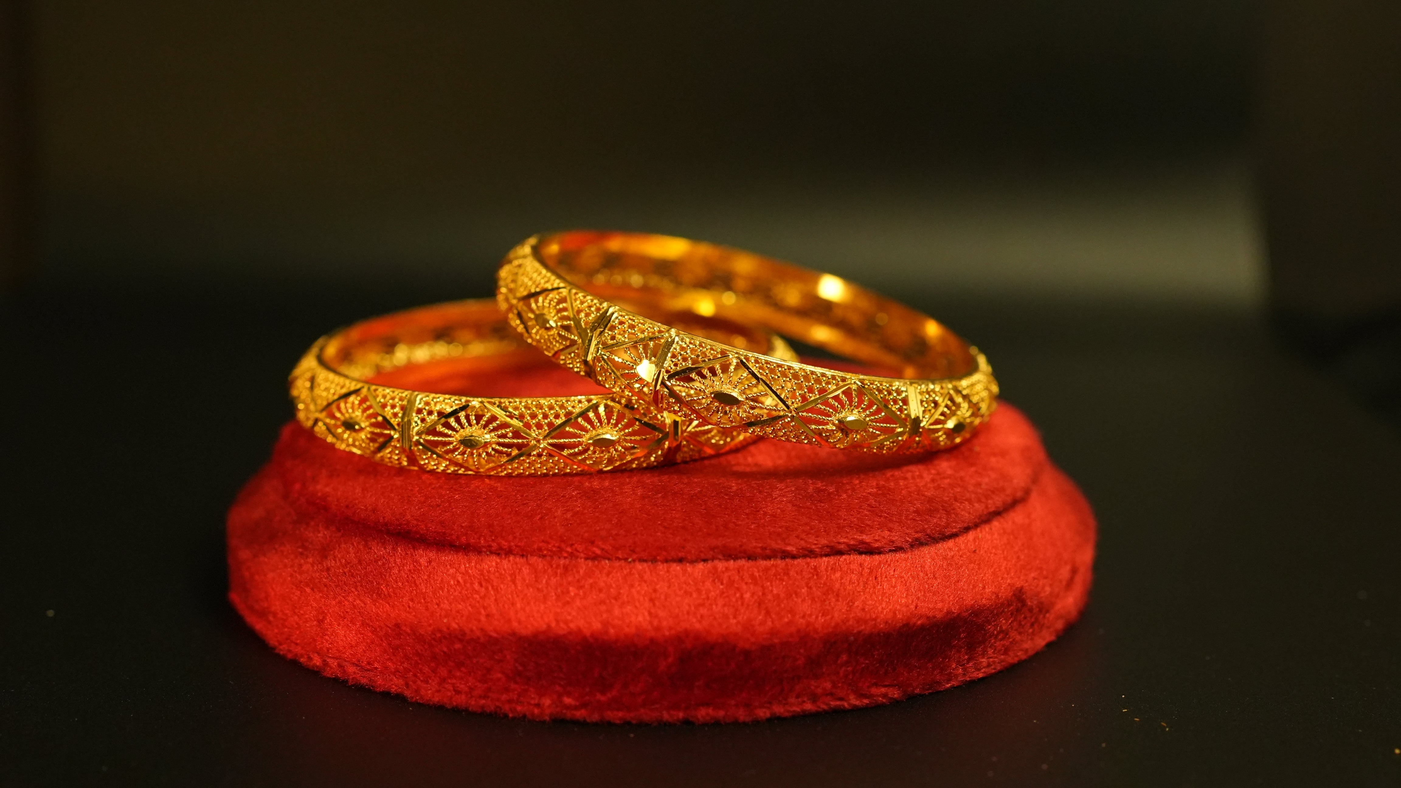 Inspired by lace-like patterns, these 22K gold bangles embody timeless beauty and sophisticated craftsmanship